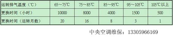 說明:壓縮機內(nèi)部潤滑油系維系壓縮機正常運轉(zhuǎn)之關(guān)鍵,一般潤滑油的問題有: 2.更換周期:一般每運轉(zhuǎn)10000小時須檢查或更換一次潤滑油,且第一次運轉(zhuǎn)后,2500小時建議更換一次潤滑油并清洗機油過濾器。因系統(tǒng)組裝的殘渣在正式運轉(zhuǎn)后都會累積至壓縮機中。所以2500小時 (或3個月) 應(yīng)更換一次潤滑油,爾后依系統(tǒng)清潔度狀態(tài)定時更換,若系統(tǒng)清潔度佳,可每10000小時 (或每年) 更換一次。壓縮機排氣溫度若長期維持在高溫狀態(tài),則潤滑油劣化進度很快,須定期(每2個月)檢查潤滑油化學特性,不合格時即更換。若無法定期檢查則可依以下建議表執(zhí)行。
